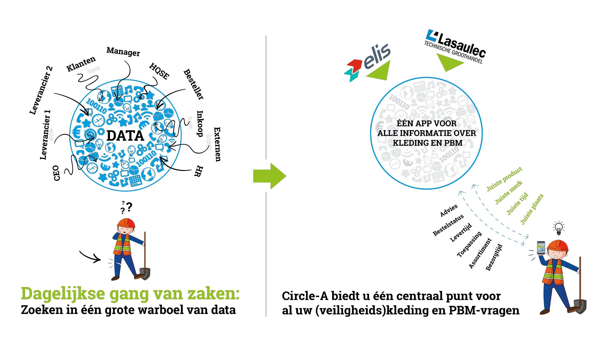 Omdat er tegenwoordig zoveel data en informatie te vinden is, wil Circle-A het u gemakkelijk maken. Daarom hebben we een app ontwikkeld, waarmee het voor de gebruiker van de Circle-A app eenvoudig zal zijn om overal in de wereld eenvoudig en snel toegang te krijgen tot de informatie die voor haar/hem op maat is gesneden. Dit kan voor een besteller informatie betreffen over waar het bestelde kledingstuk zich bevindt en waar dit op welk moment afgeleverd gaat worden middels Track & Trace. Voor de manager geldt dat snel en eenvoudig de informatie beschikbaar is over bewassingsgraad, gebruiksgedrag, bestelgedrag, leverperformance van Circle-A in relatie tot de gemaakte afspraken, afwijkingen facturen, retourstromen met redenen, etc. Door de transparantie in informatievoorziening worden alle discussies teruggeleid naar daar waar het daadwerkelijk over moet gaan, namelijk de veiligheid van de gebruiker. De app ondersteund een ieder in het inzicht in het wel/niet beschikbaar hebben van de juiste PBM’s en kleding en de weg daar naar toe.